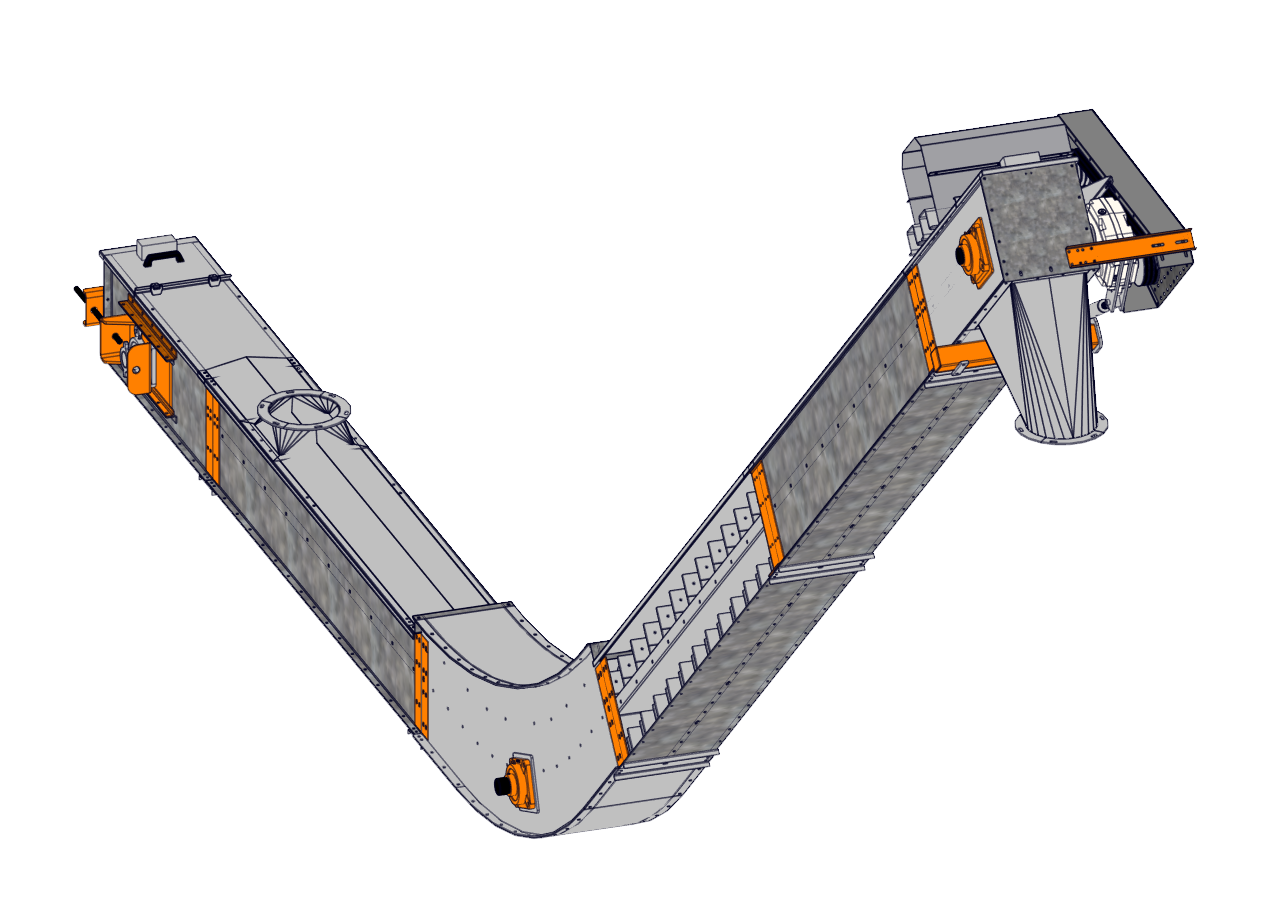 Açılı konveyörler, taşınacak malzemenin türüne, eğim derecesine, uzunluğuna ve kapasitesine göre farklı şekil ve boyutlarda tasarlanabilirler. Güvenlik önlemleri, malzemelerin güvenli bir şekilde taşınmasını sağlamak için önemlidir ve bu nedenle tasarımda dikkate alınmalıdır. Bu tür konveyörler, madencilik, tarım, inşaat ve malzeme taşıma endüstrilerinde yaygın olarak kullanılmaktadır.
